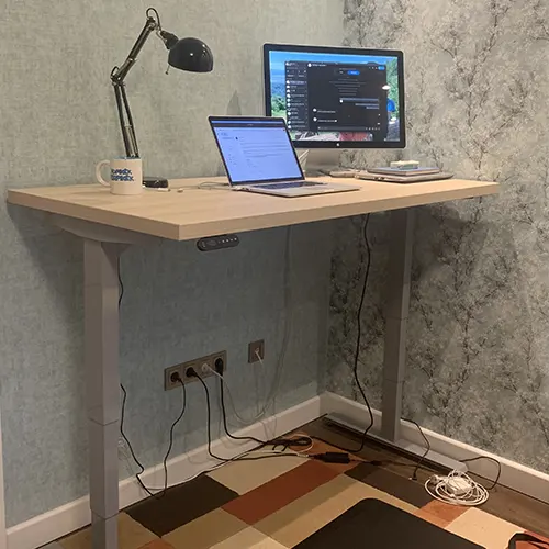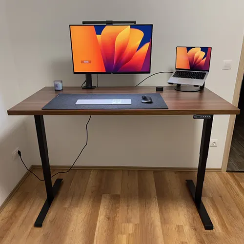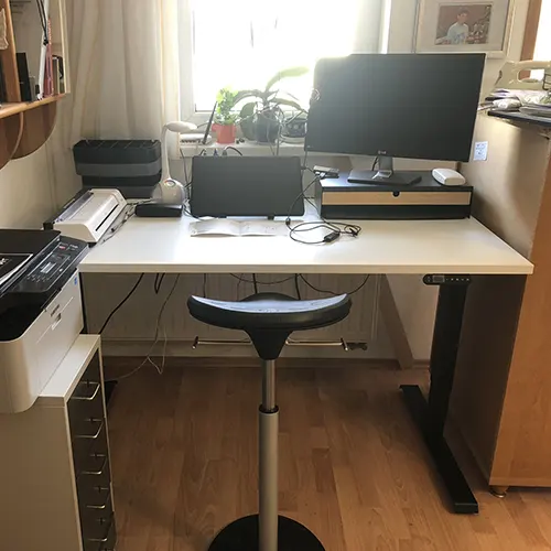 Ich bin sehr zufrieden mit dem Schreibtisch und arbeite jeden Tag viel mit ihm im Stehen. Ich habe mich recht schnell daran gewöhnt. Ich mag die Memory-Funktion, da ich ihn nach dem Drücken dort lassen kann :) und die Kabelhalterung auf der Rückseite ist praktisch. Der Schreibtisch ist stabil, kein Wackeln.