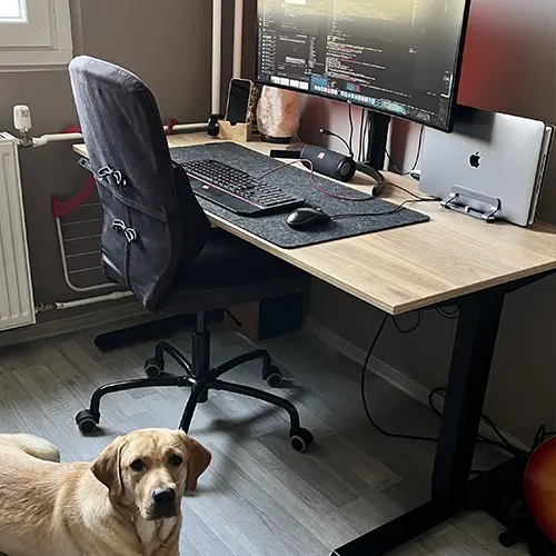 Ich arbeite seit vier Jahren als Softwareentwickler im Home Office. Ich wollte mir schon seit einiger Zeit einen verstellbaren Schreibtisch zulegen, und jetzt sage ich, ich wünschte, ich hätte nicht so lange gewartet! Ich würde ihn jedem empfehlen, der überwiegend von zu Hause aus arbeitet. Ich benutze ihn jetzt seit drei Monaten, und ich benutze ihn normalerweise, wenn er für kürzere Besprechungen (30-60 Minuten) aufgestellt ist. Es ist sehr praktisch, dass ich die Position im Laufe des Tages leicht ändern oder mich ausstrecken kann, so dass die Monitore auf die übliche Sichthöhe gebracht werden können, so dass ich mich nicht bücken muss. Es ist ein solider, stabiler Schreibtisch.