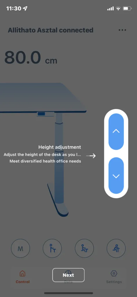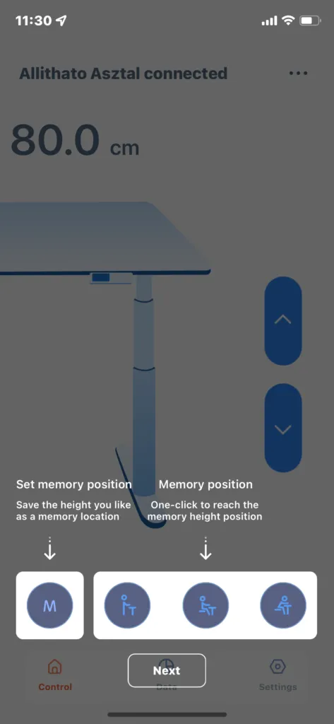 Eine weitere hilfreiche Funktion der Steuerung mit dem Bluetooth Dongle ist, dass Sie Erinnerungen einstellen können, wenn Sie dazu neigen, sich zu sehr in die Arbeit zu vertiefen und vergessen, zwischen Sitz- und Stehpositionen zu wechseln. Stellen Sie einfach eine zeitgesteuerte Benachrichtigung in der App ein, wenn Sie zu lange sitzen oder stehen. Es wird empfohlen, etwa alle 40–60 Minuten die Position zu wechseln.