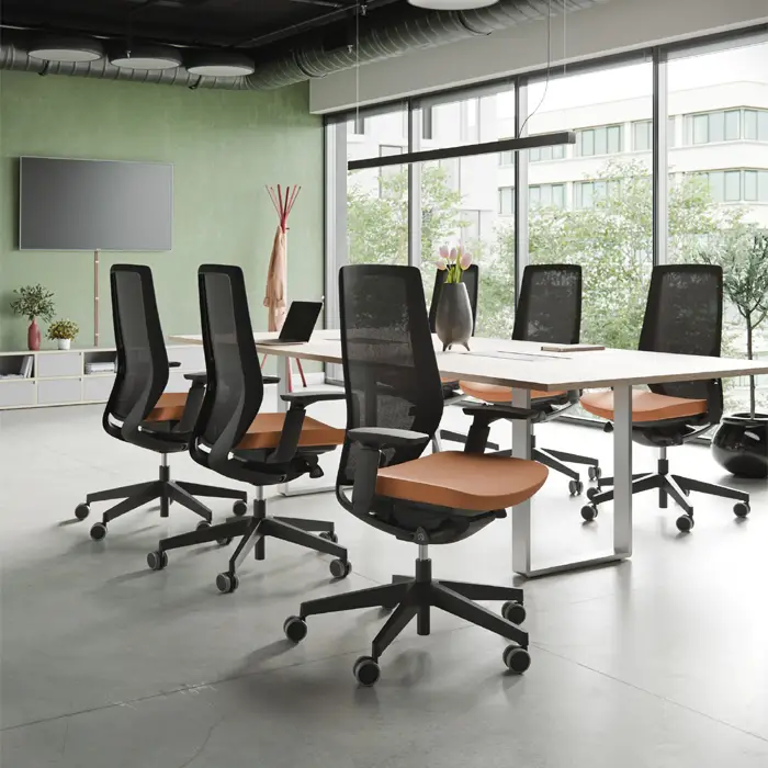 Accis Pro zeichnet sich durch sein modernes Design und die Leichtigkeit der Form aus. ITO Design Studio entwarf diesen Drehstuhl nach den Prinzipien des so genannten aktiven Sitzens, d. h. der Notwendigkeit, dass sich Sitz und Rückenlehne den Körperbewegungen des Benutzers anpassen.