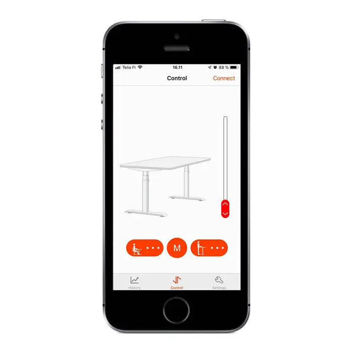 In der AiDesk-App müssen Sie das Gerät (durch Scannen eines QR-Codes und über eine Bluetooth-Verbindung) mit Ihrem verstellbaren Schreibtisch koppeln. Nach der Kopplung können Sie Ihren Schreibtisch bequem aus der Ferne steuern. Der Bluetooth-Standard hat eine Reichweite von 10 m.
