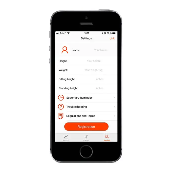 Zusätzlich ermöglicht die App die einfache Erstellung von Berichten über Ihre Aktivität während des Arbeitstags. Dazu müssen Sie Ihre Basisdaten (Gewicht, Größe) sowie Ihre Sitz- und Stehhöhe im Einstellungsmenü der App eingeben.