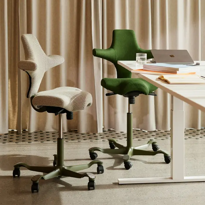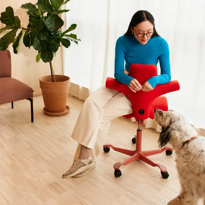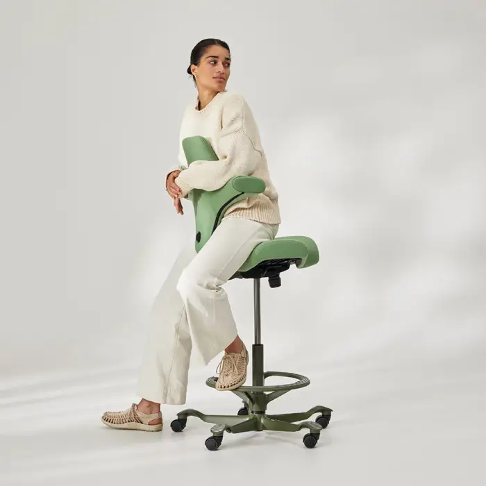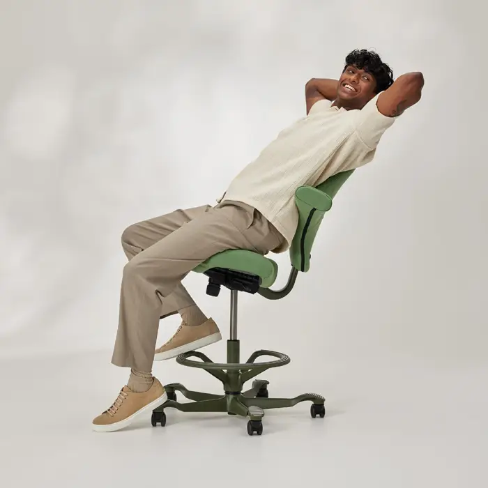 Der ergonomische Stuhl Capisco passt sich perfekt an Ihre Bedürfnisse an, denn Sie können sowohl die Sitzfläche als auch die Rückenlehne und das Fußkreuz separat auswählen. Zudem haben Sie die Freiheit, das Material und die Farben Ihres eigenen ergonomischen Maßstuhls zu wählen.