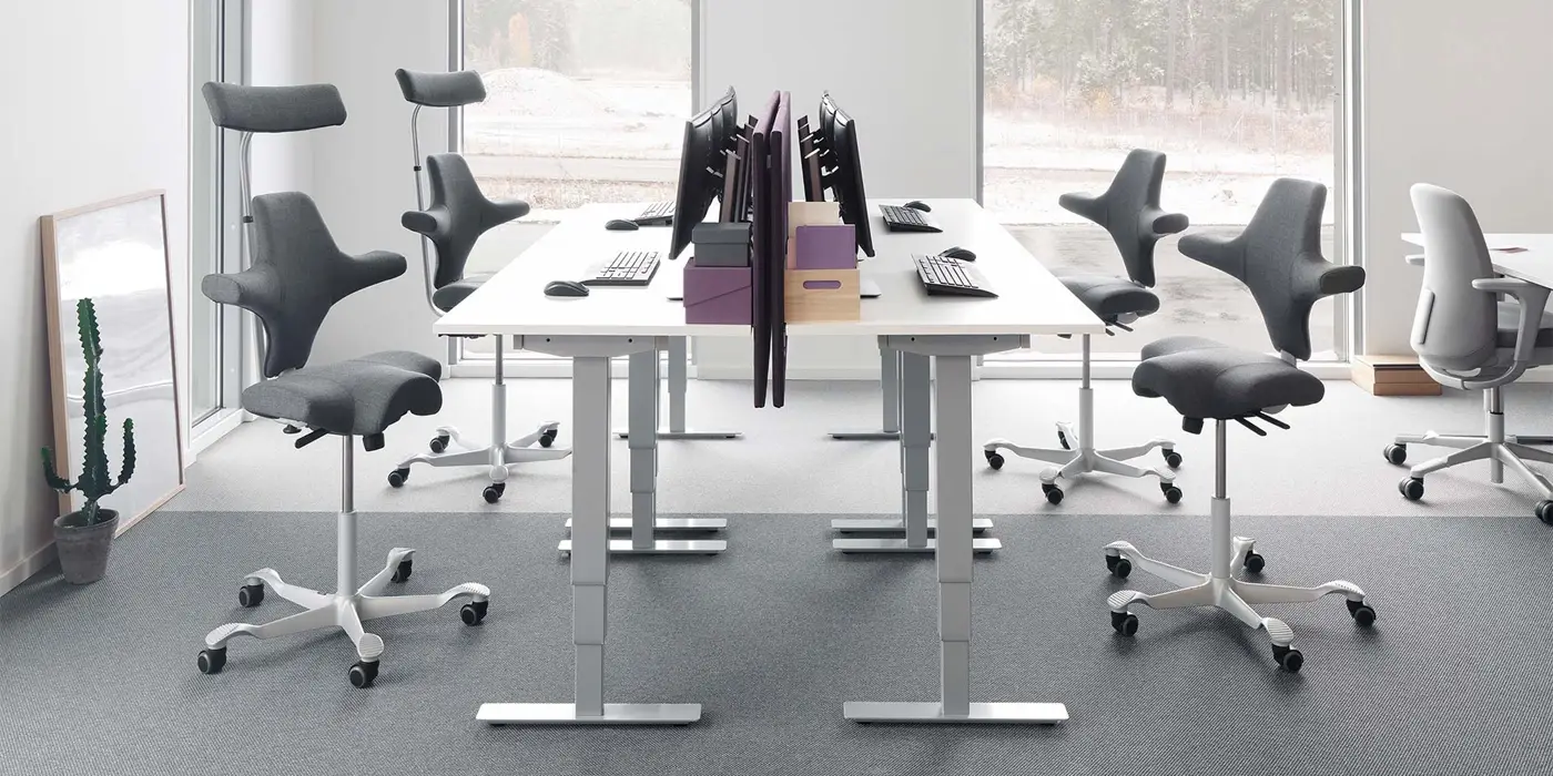 Der HÅG Capisco Puls bietet eine hervorragende Lösung für die modernen Büros von heute, die zunehmend durch ständige Bewegung, wechselnde Positionen, unterschiedliche Aufgaben und sowohl längere als auch kürzere Besprechungen gekennzeichnet sind. Die Mitarbeiter sind immer weniger an einen festen Ort gebunden und entscheiden zunehmend selbst, wo und wie sie arbeiten möchten.