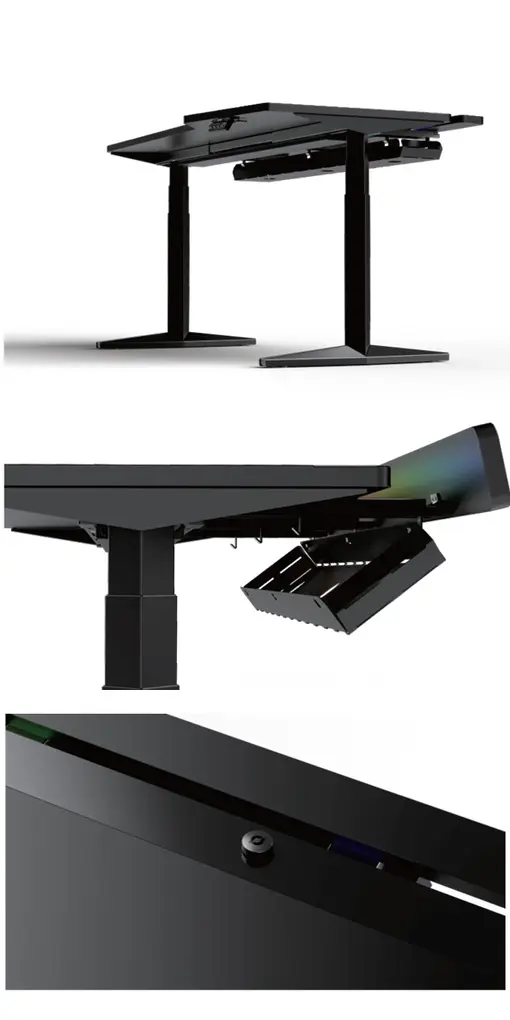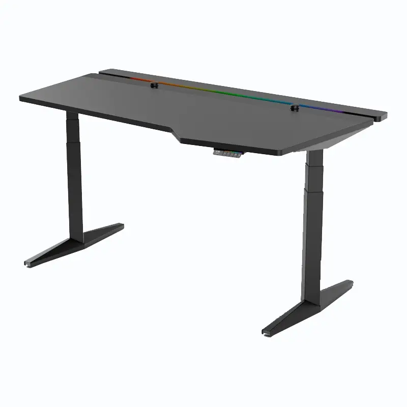 Der Invictus Gamer Electric Adjustable Table kombiniert stilvolles Design mit robuster Konstruktion. Mit dem großen Handheld-Controller können Sie die Höhe per Knopfdruck einstellen – perfekt zum Spielen oder Arbeiten. Die integrierte, programmierbare RGB–Lichtleiste mit einstellbaren Farben sorgt für eine authentische Gamer-Atmosphäre.