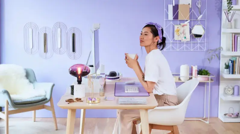 Unsere Logitech Desk Mat ist eine hervorragende Ergänzung zu unserem Schreibtisch. Sie schützt nicht nur die Tischplatte, sondern bringt mit ihren wählbaren Farben auch frischen Wind in Ihre Arbeitsumgebung. Das angenehme, feine Textilmaterial sorgt für ein angenehmes Gefühl bei der Benutzung von Tastatur und Maus.