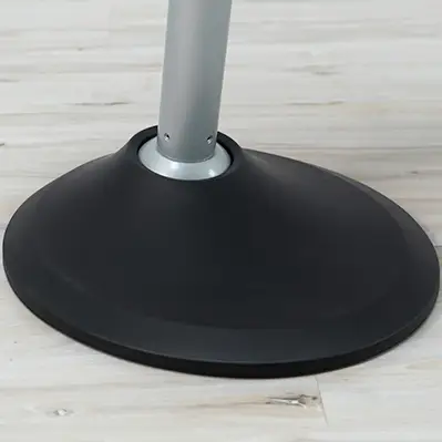 Im Gegensatz zu herkömmlichen ergonomischen Stühlen ermutigt der MOBIS® Sitz-/Stehstuhl zu freier Bewegung, statt stundenlang in einer festen Position zu verweilen. Ohne Arm- oder Rückenlehnen fördert er eine schräge Sitzhaltung mit einer höheren Position des Sitzes, wobei die Füße in einem Winkel von 130-135 Grad zum Boden stehen. Diese aufrechte Position entlastet Beine und Wirbelsäule und ermöglicht aktives Arbeiten.
