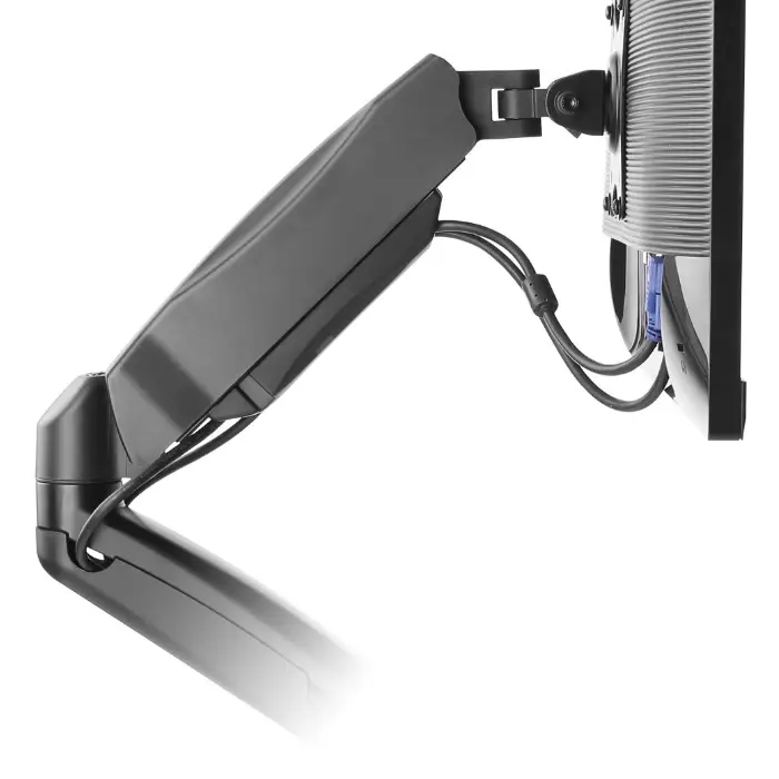 Die Gasdruckfeder sorgt für eine präzise und stabile Einstellung des Monitors, der in der eingestellten Position sicher gehalten wird. Dennoch können Sie den Monitor jederzeit problemlos neu positionieren, um immer eine ergonomische Arbeitsweise zu gewährleisten.