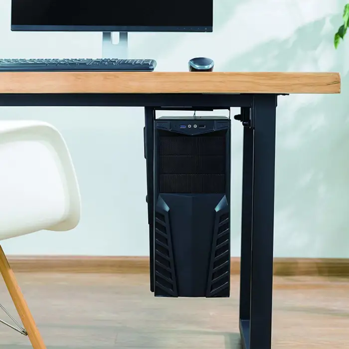 Die PC Halterung ist die ideale Lösung, um Ihren verstellbaren Schreibtisch optimal zu nutzen. Sie sorgt dafür, dass der Computer keinen Platz auf der Tischplatte einnimmt und sich mit dem Tisch bewegt, sodass Ihr Arbeitsbereich stets aufgeräumt bleibt.