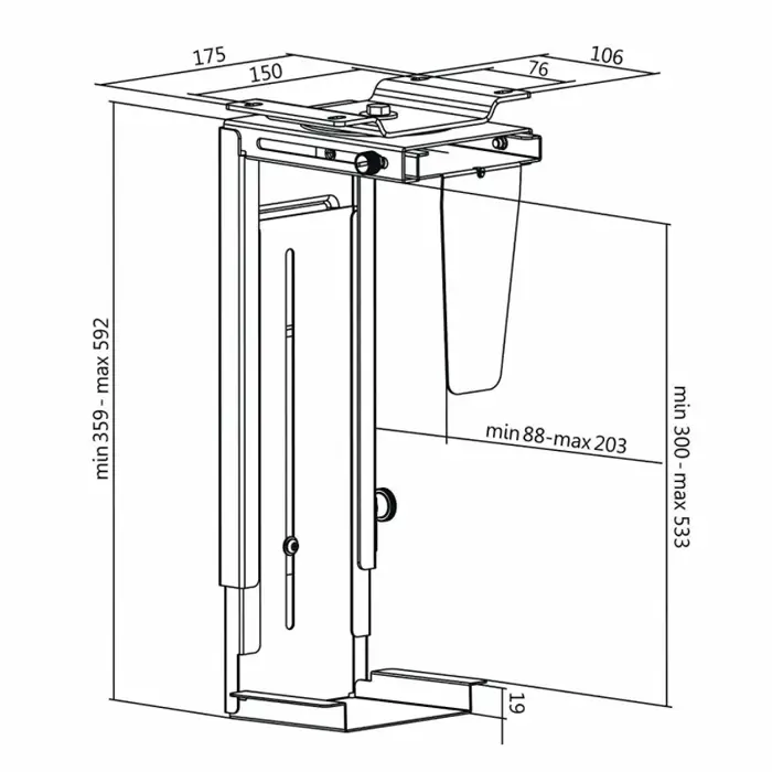 Durch die einfache Montage und die robuste Bauweise ist die PC Halterung eine zuverlässige und langlebige Lösung für jeden Arbeitsplatz.